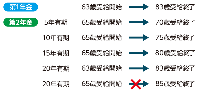 ②受給期間は、第1年金と第2年金を合わせて20年以内に受給が終了するように設定